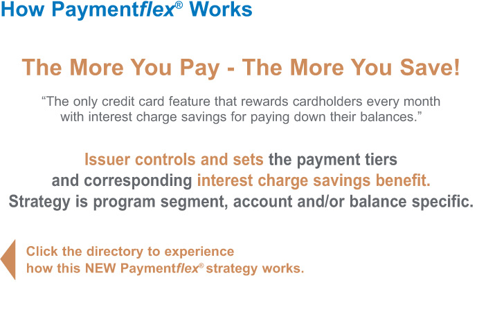 Introducing Paymentflex® How Paymentflex® Works What The Customer Sees Why Offer Paymentflex® To Your Customers Testimonials Situational Analysis Ease Of Deployment Economic Advantages In-Market Results Versatility Across All Strategies Target Products Acquisition Strategies Portfolio Management Strategies Motivational Marketing Messages Consulting Support & Resources